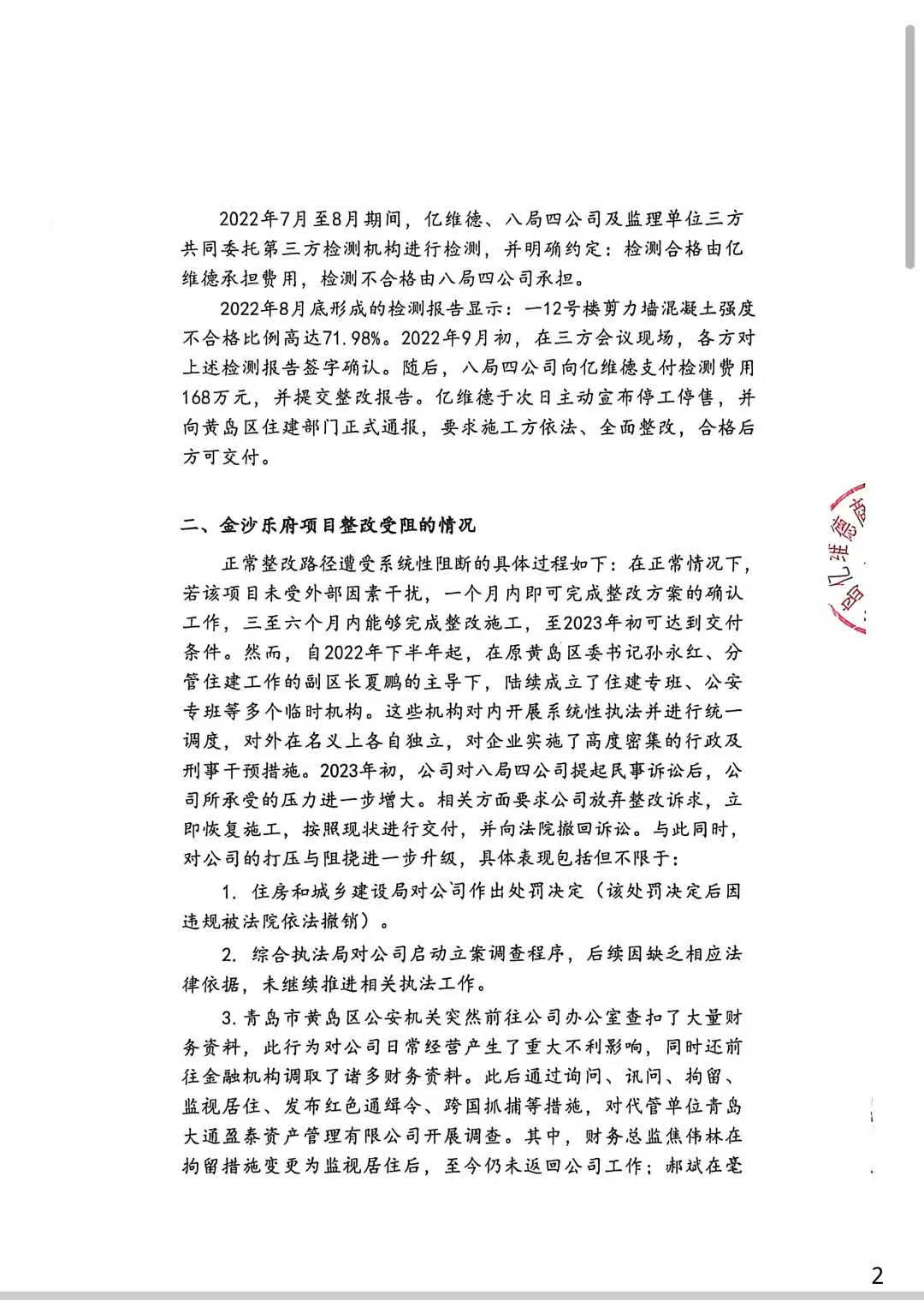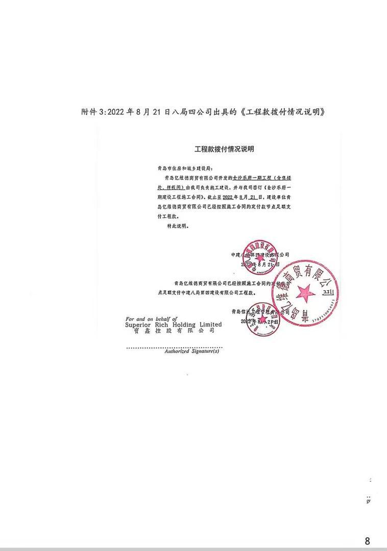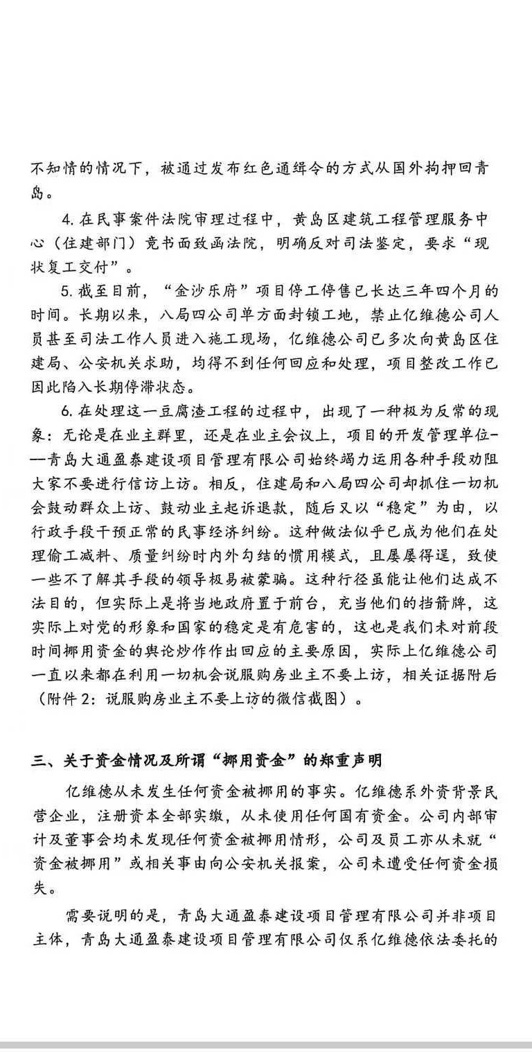 宝鑫控股有限公司关于青岛亿维德商贸有限公司不存在任何挪用资金及“金沙乐府”项目有关事实的声明